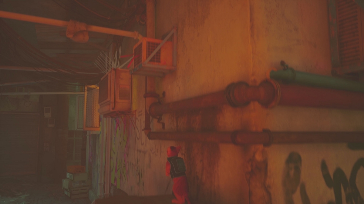 なんせ猫なんで、細いパイプや換気扇だってぴょんっと飛んで伝って歩けば人間が通れないような場所でもスイスイ行けちゃうんですよね。羨ましい。くまなくパイプを伝って歩いてみると隠しスポットが存在したり、収集要素もあるので飽きが来ず楽しかったです。
